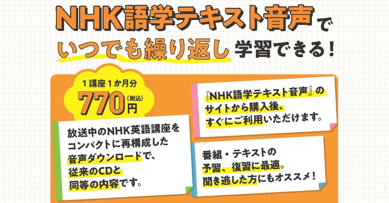 NHK語学講座を再構成した別売音声がさらにお求めやすい価格に! 新サービス『NHK語学テキスト音声』が2月14日より予約受付中。