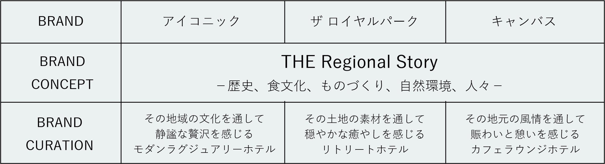 「THEシリーズ」では、3つのブランドライン[ザ ロイヤルパークホテル アイコニック/ザ ロイヤルパークホテル/ザ ロイヤルパーク キャンバス]が【THE Regional Story】のコンセプトのもと、今後それぞれに異なる世界観を表現してまいります。