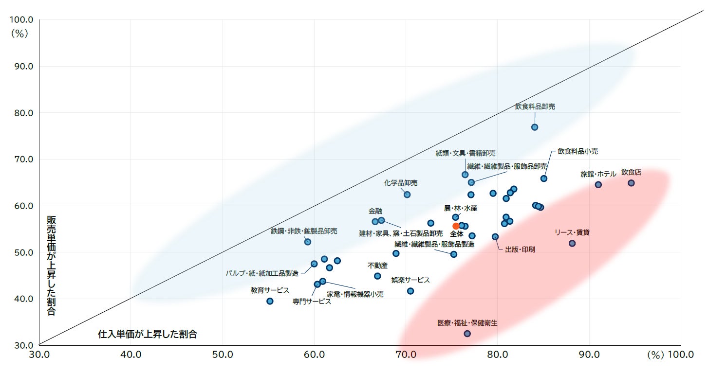 全ての業種で仕入単価の上昇に販売単価の転嫁が追いつかず