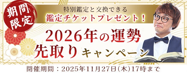 「アポロン山崎の占い」では、1年の終わりが見えてくるこの時期に合わせ『2026年の運勢先取りキャンペーン』を開催中です。キャンペーン期間中に対象の鑑定を受けていただいた方には、期間限定の特別鑑定と引き換えることができる鑑定チケットをプレゼント!