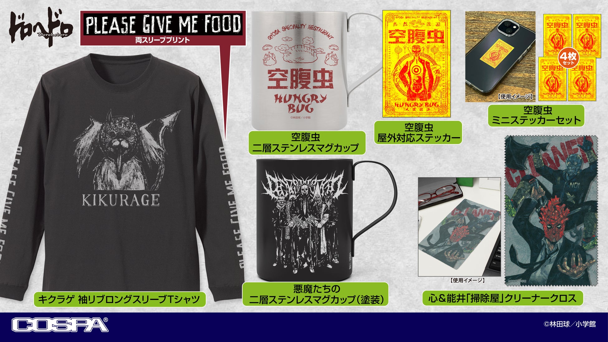 原作版『ドロヘドロ』より、表も裏も悪魔が支配する「両面フルグラフィックTシャツ」、「空腹虫」のマグカップやステッカーなど世界観を楽しめる新作アイテムが登場!【株式会社コスパ】