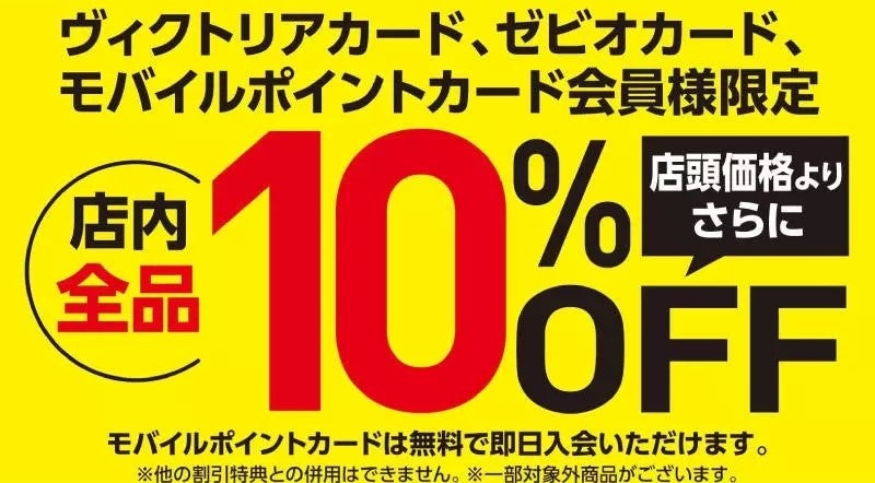 11/25(金)~12/11(日)までの期間限定でモバイル会員証提示で10%OFFの優待セールを実施いたします。