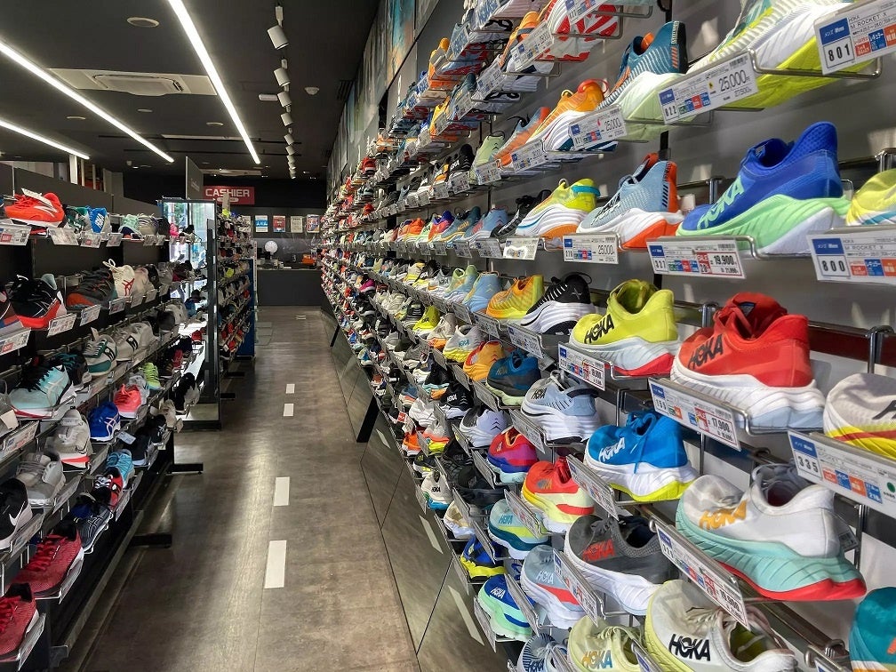 <シューズ>アシックスコーナー最新のモデルから話題のカーボンシューズまで、全てのランナーレベルに対応します。人気急上昇ブランドの定番アイテムから希少アイテムまで取り揃えました。また、On・BROOKS・HOKAコーナーも設置。全てのランナーにご満足頂ける品揃えです。