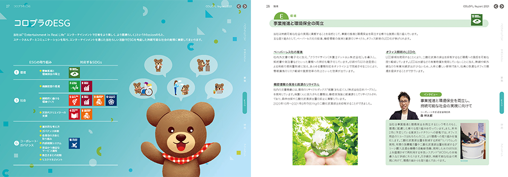 当社は「“Entertainment in Real Life” エンターテインメントで日常をより楽しく、より素晴らしく」というMissionのもと、持続可能な社会の実現に貢献してまいります。当レポートでは、注力しているESGやSDGsの取り組みに加え、各セクションの担当者がESGに対する考えや思いを語っています。