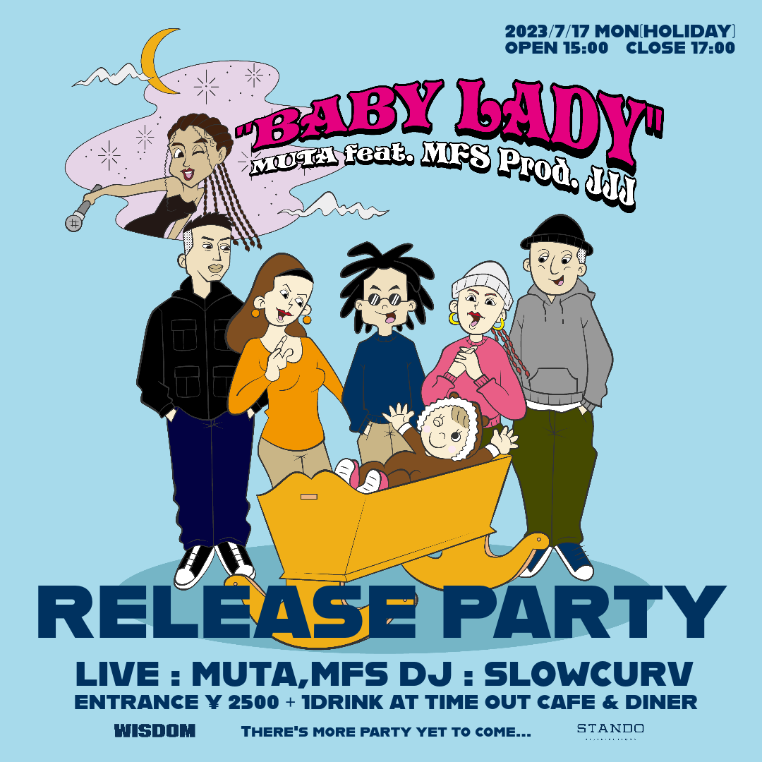 “出会いと旅⽴ちを祝福するウタ”が世界中のファミリーの元に届くことを願い、7/17(月・祝)にTIME OUT CAFE & DINERにて開催される、MUTAとMFSによる「BABY LADY RELEASE PARTY」のオフィシャルグッズが公開された。