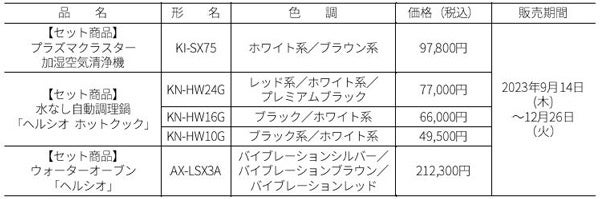 またこのたび、当社のプラズマクラスター空気清浄機、水なし自動調理鍋「ヘルシオ ホットクック」およびウォーターオーブン「ヘルシオ」の3商品(イラストプリント加工無し)においてもカスタマイズ音声とのセット販売を期間限定で実施します。