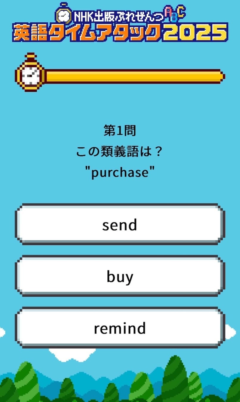 NHK出版が毎年2月に公開しているWEBコンテンツ「英語力測定テスト」は、2024年に「NHK出版ぷれぜんつ 中学英単語タイムアタック!」としてフルリニューアル。総受検回数が3倍以上となるなど大好評を博しました。今回、それをさらにパワーアップさせたのが「英語タイムアタック2025」です。