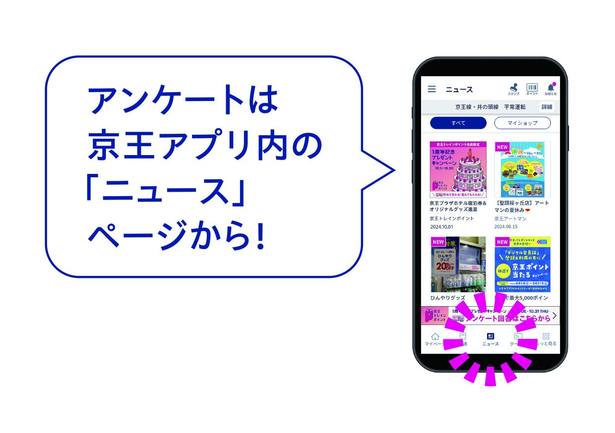 ※アンケートは、10月1日の10時以降から京王アプリ内の「ニュース」ページから回答できま