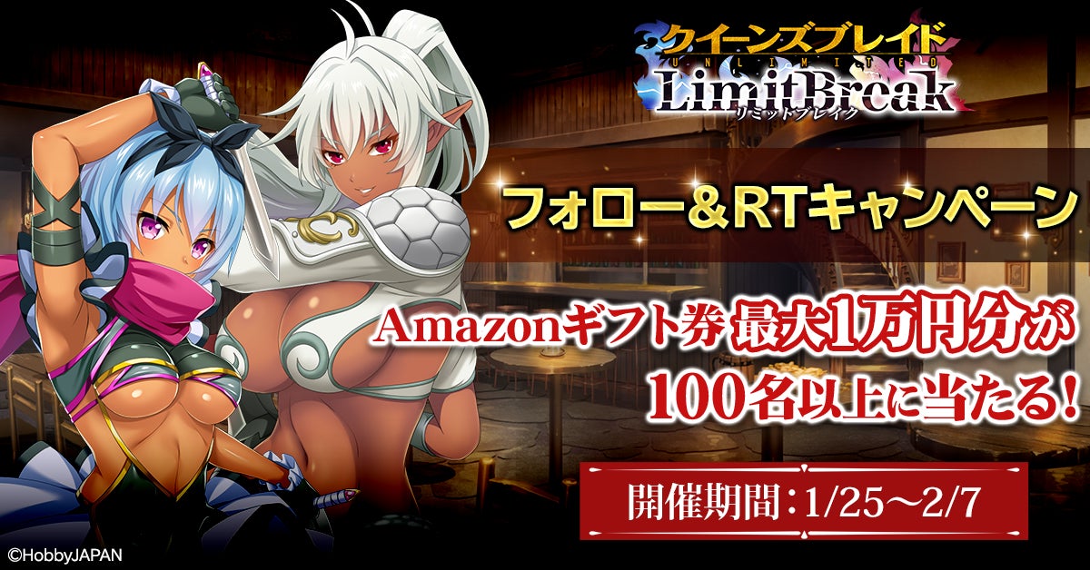最大10,000円分のAmazonギフト券が抽選で100名以上に当たる!「クイーンズブレイドリミットブレイク」キャンペーン開催!