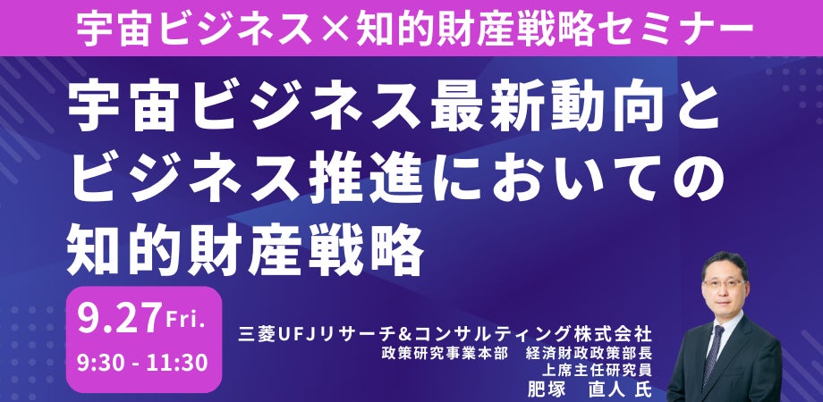 JPI(日本計画研究所)は、三菱UFJリサーチ&コンサルティング株式会社 政策研究事業本部 経済財政政策部長 肥塚 直人 氏を招聘し、宇宙ビジネス最新動向と知的財産戦略への取り組み方について詳説いただくセミナーを開催します。