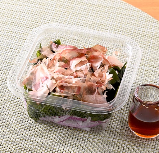 【内容】歯ごたえのよい三陸産わかめを、ゆず果汁の爽やかな風味とかつおエキスのだしの風味が効いたポン酢でいただくサラダです。