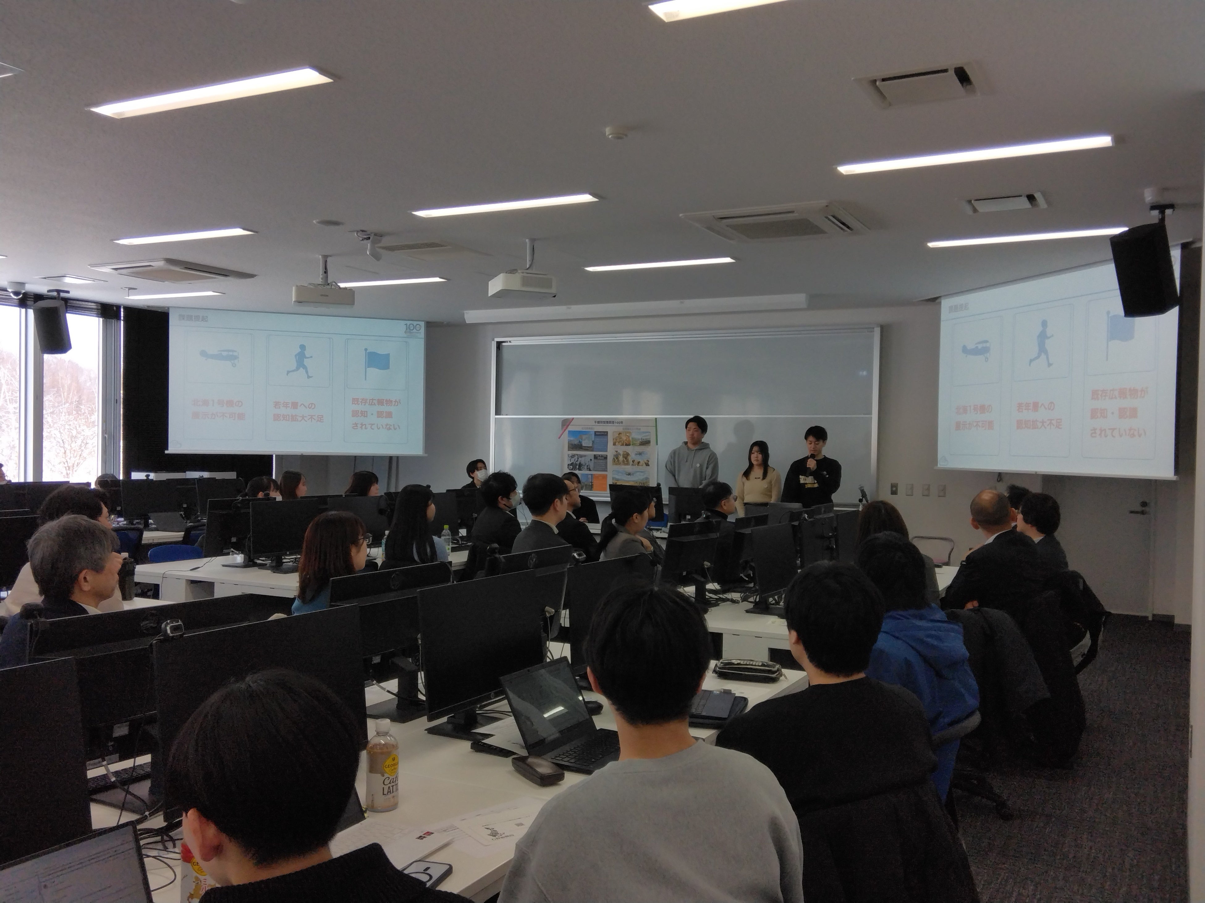 また、公立千歳科学技術大学は千歳市と連携し、フィールドワーク等を通じて地域の実情や課題について理解を深めました。その成果を踏まえ、千歳市が抱える課題解決に向けた企画・提案を行いました。