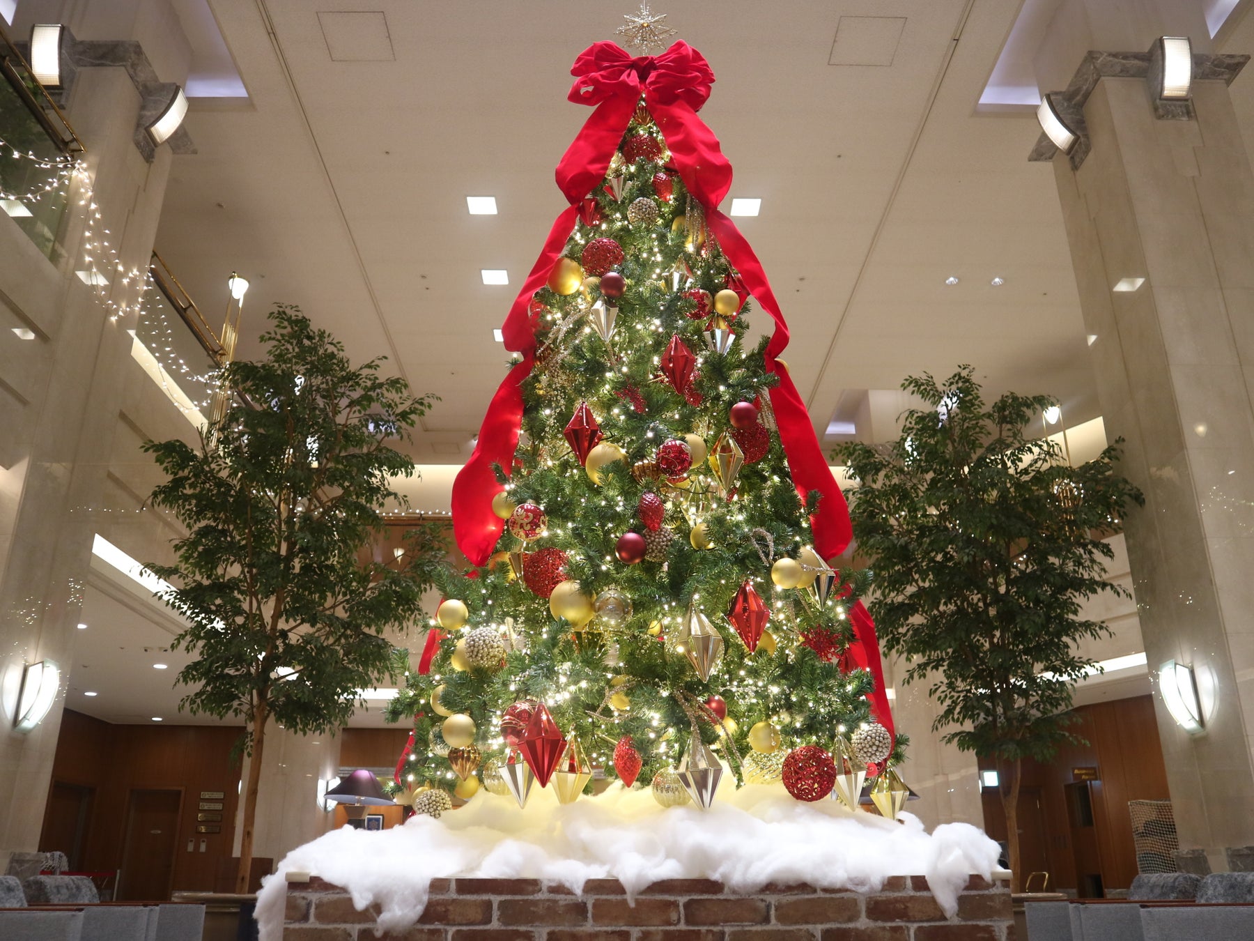 【ホテルグランヴィア岡山】ロビーがクリスマスモード一色に。赤とゴールドを基調としたクリスマスツリーが登場