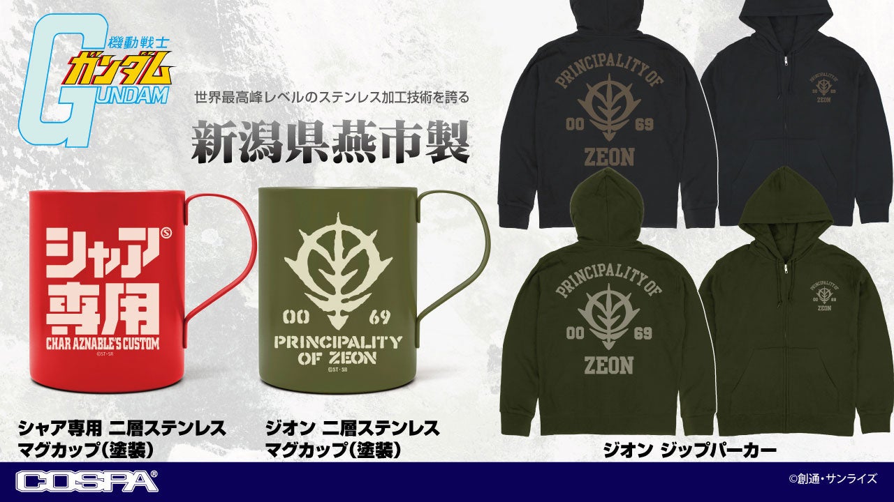 公式キャラクターコスチュームやアパレル・グッズの企画、開発、製造を行う株式会社コスパ(所在地:東京都渋谷区、代表取締役:松永芳幸)は、『ガンダムシリーズ』新作グッズを発表した。
