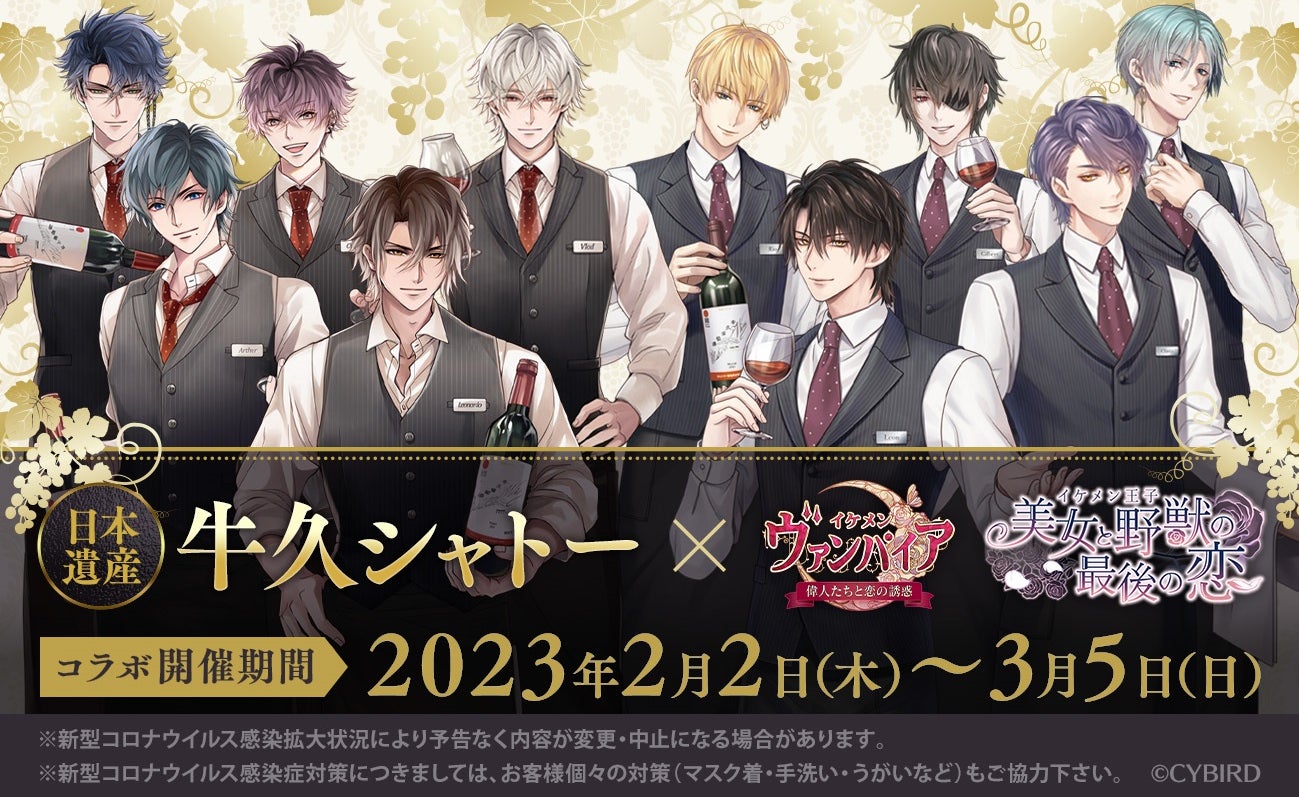 牛久シャトーにて、「イケメンシリーズ」の人気2タイトル『イケメンヴァンパイア◆偉人たちと恋の誘惑』、『イケメン王子 美女と野獣の最後の恋』のキャラクターを使用したコラボレーションイベントを実施します。