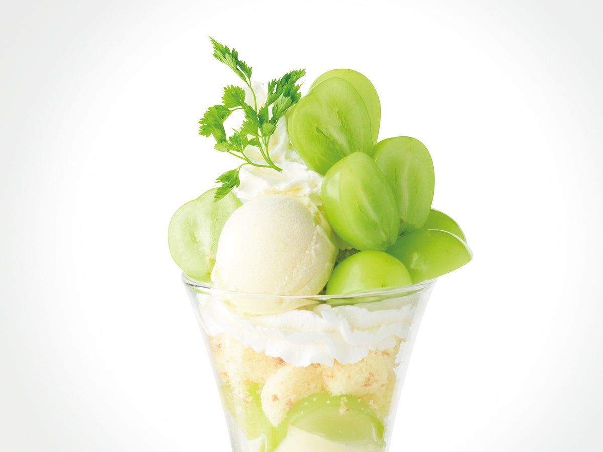 ジューシーで爽やかな長野県産シャインマスカットのパフェを、カフェ・レストランでごゆっくりお楽しみください。