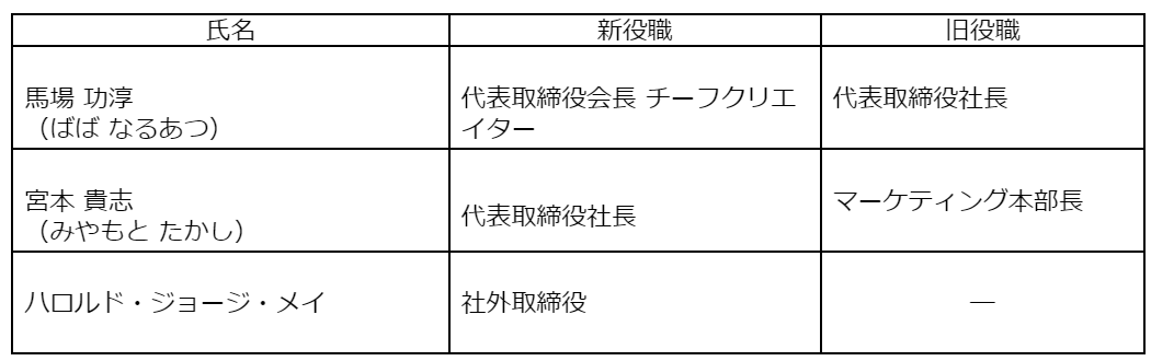 新体制の背景や新任役員のコメントについては下記のお知らせをご覧ください。