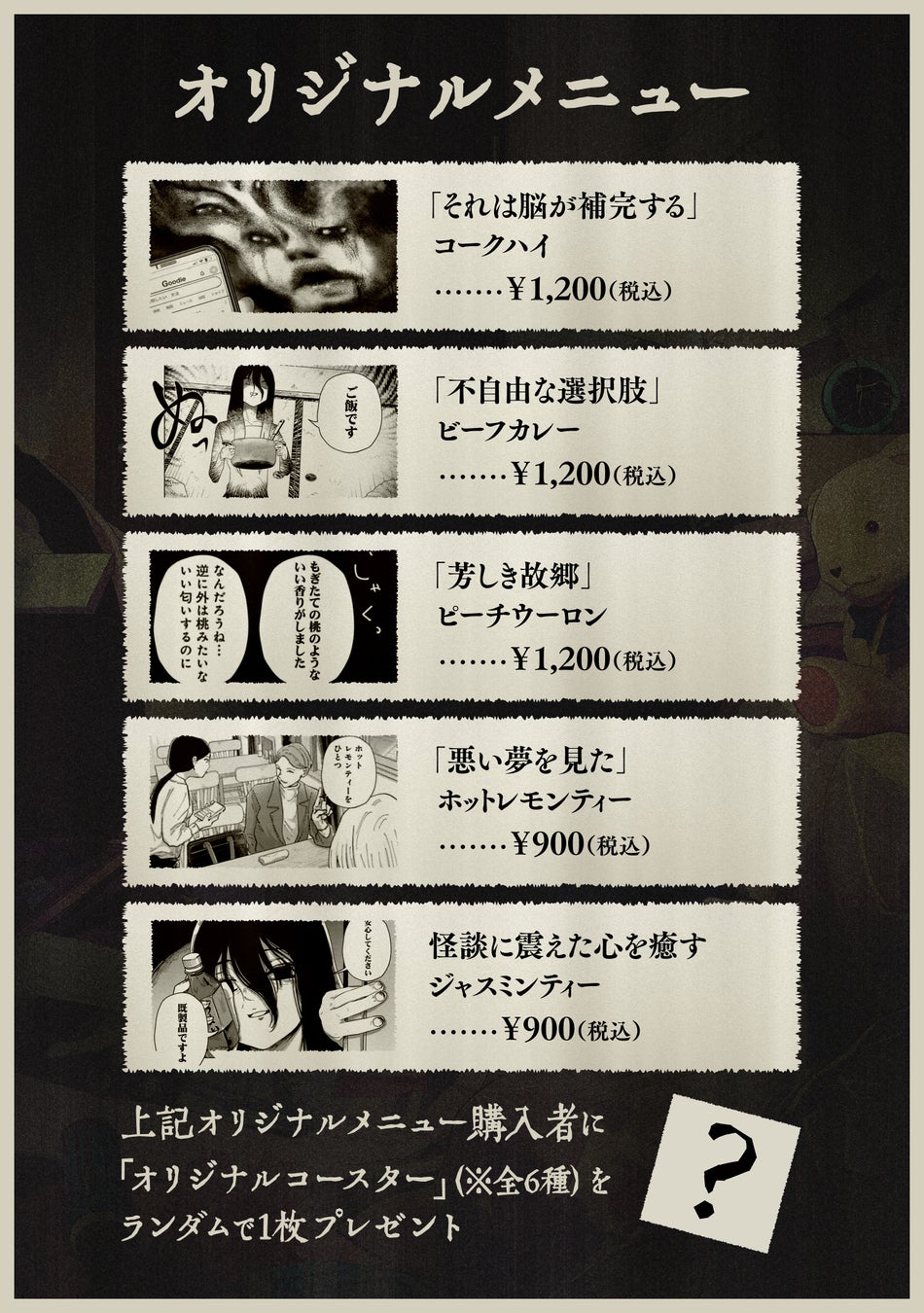 会場内は飲食が可能で、当日に販売するオリジナルドリンクを1杯ご購入につき、オリジナルコースター(全6種)をランダムで1枚プレゼントします。