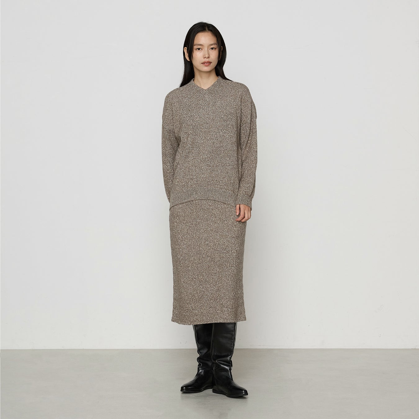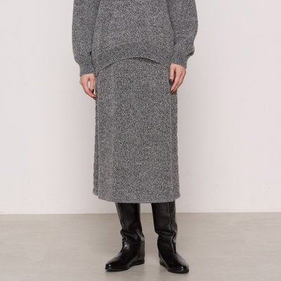 スカートは、着回しやすいベーシックなデザインと、広がりすぎないAラインシルエットで、素敵な大人スタイルを作ります。前後の編地を変えることでシンプルすぎず、1枚着用するだけでお洒落に決まります。