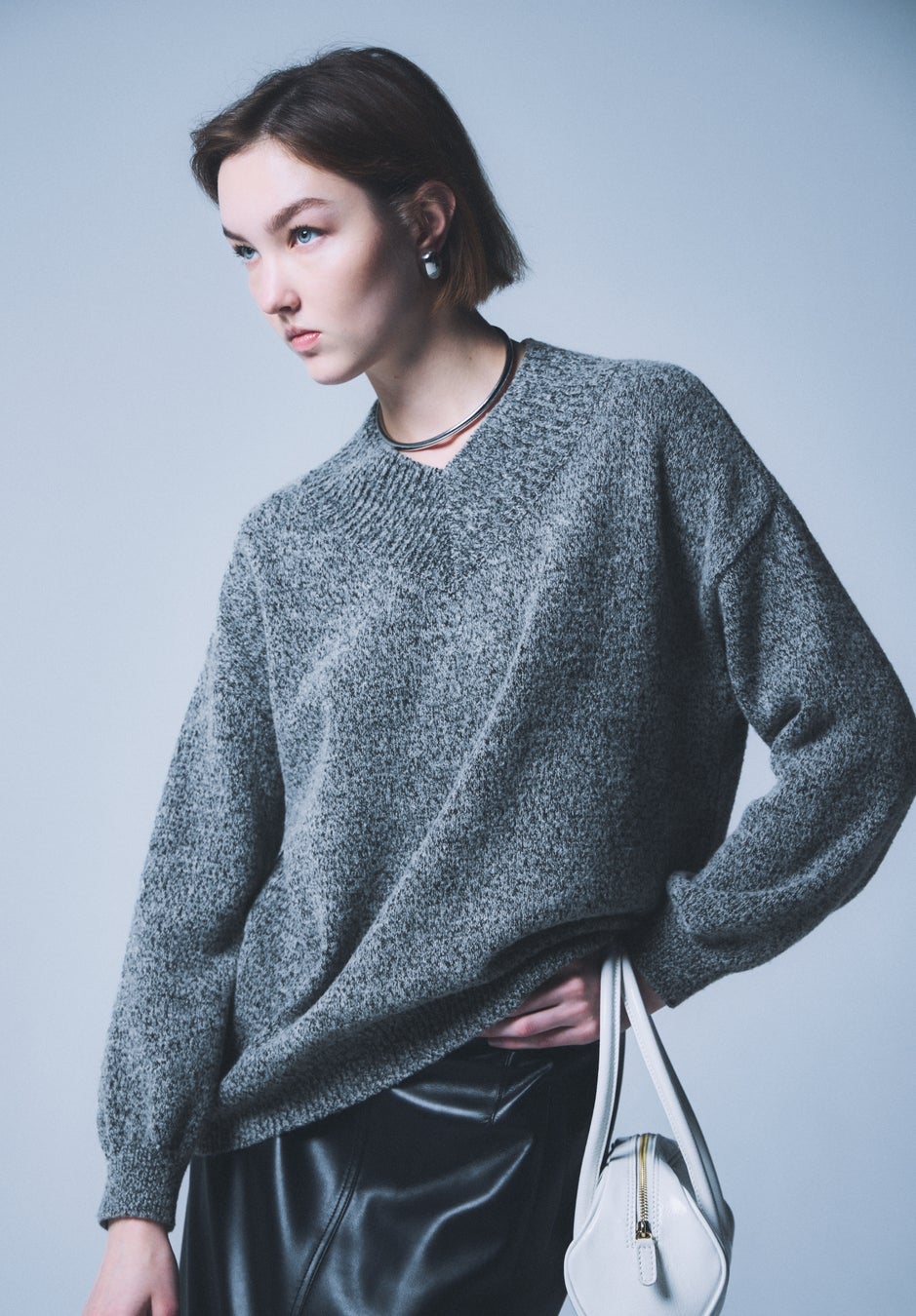 Vネックプルオーバー 30,800円 カラー:チャコール系、ベージュ系、サックスグレー系
