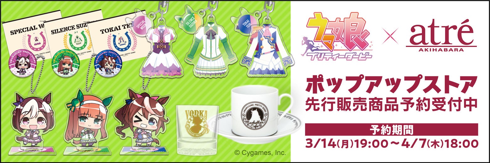 - 「ウマ娘 プリティーダービー × アトレ秋葉原 ポップアップストア」にて先行販売された商品をあみあみオンラインショップにて予約受付中。