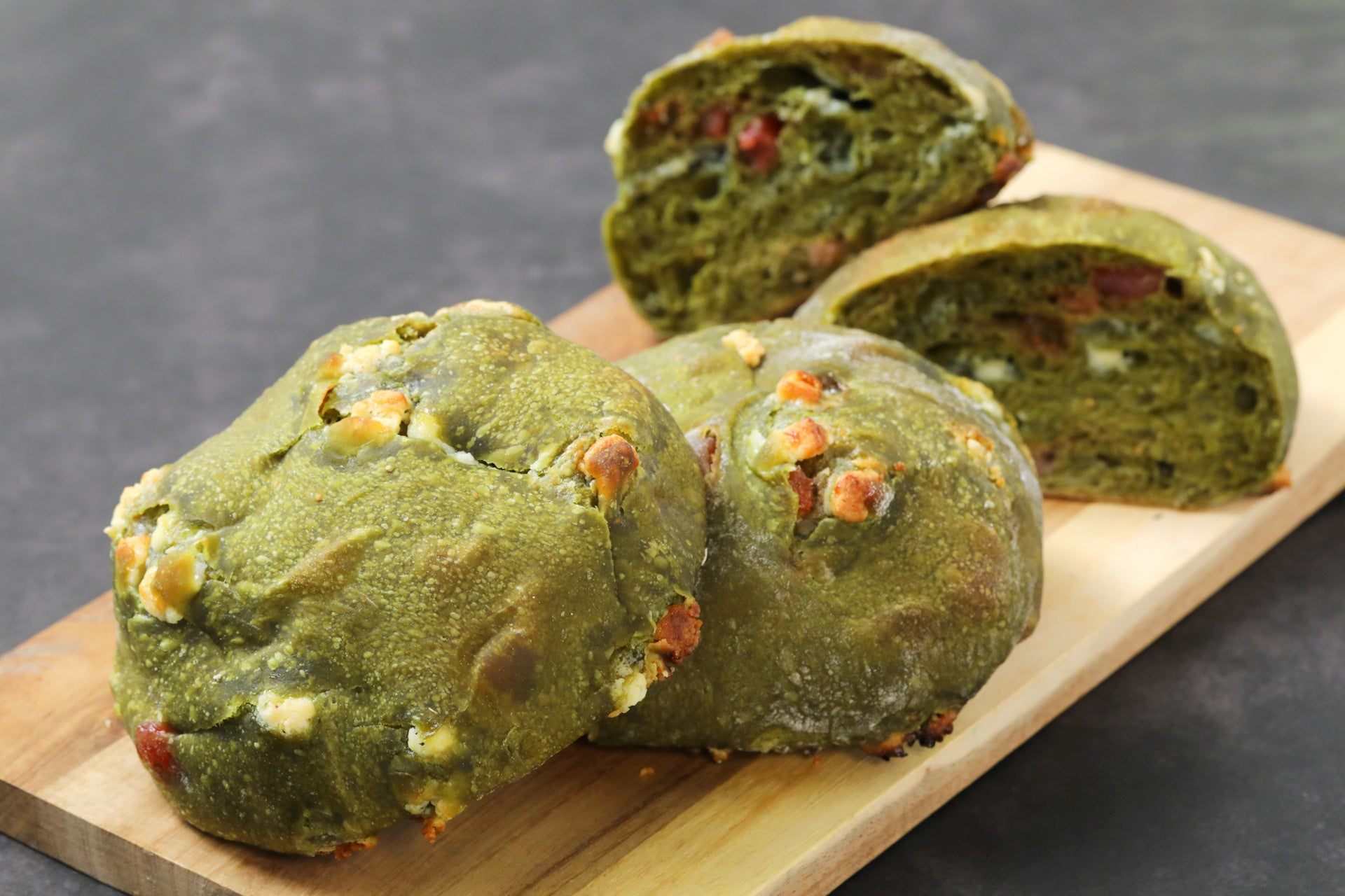 み、ドライストロベリーとホワイトチョコレートを加えて焼き上げました。抹茶の風味広が