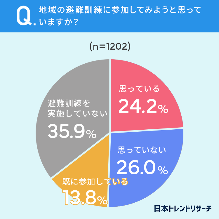 最後に、地域の避難訓練に参加してみようと思っているか聞いてみました。