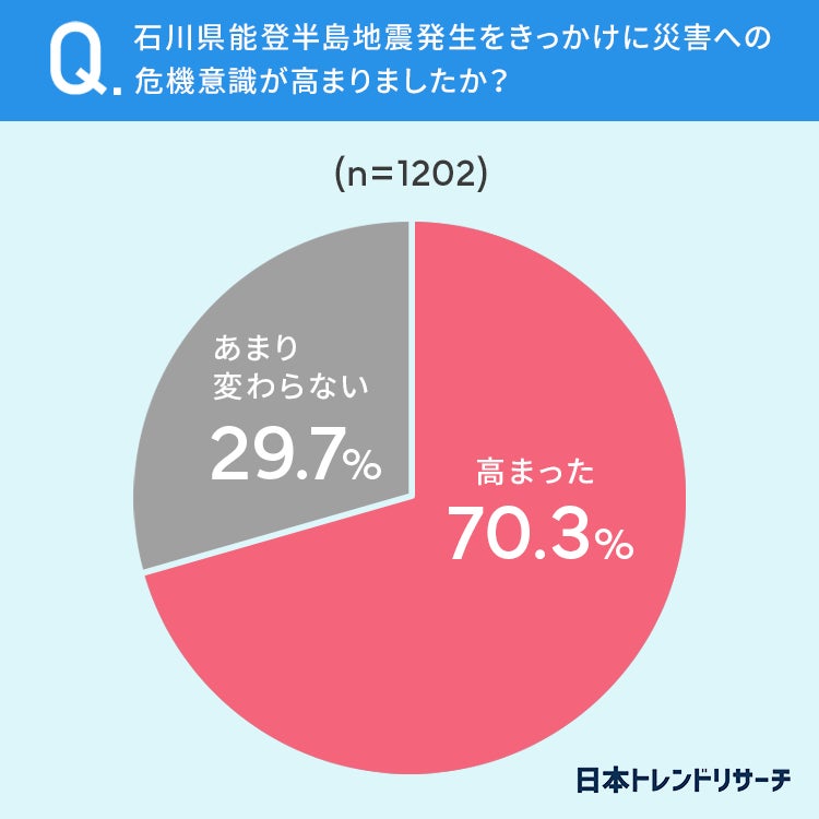 ■70.3%が、石川県能登半島地震発生をきっかけに災害への危機意識が「高まった」