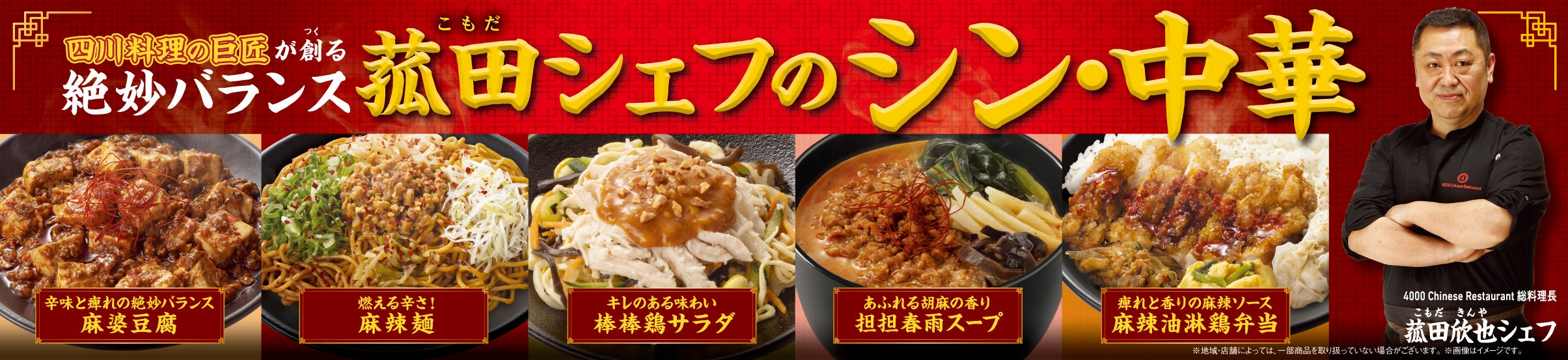 “四川料理の巨匠”菰田欣也シェフが創る中華メニュー第2弾「菰田シェフのシン・中華」が11月7日(火)登場~辛さ、痺れ、香り、旨みの絶妙なバランス~