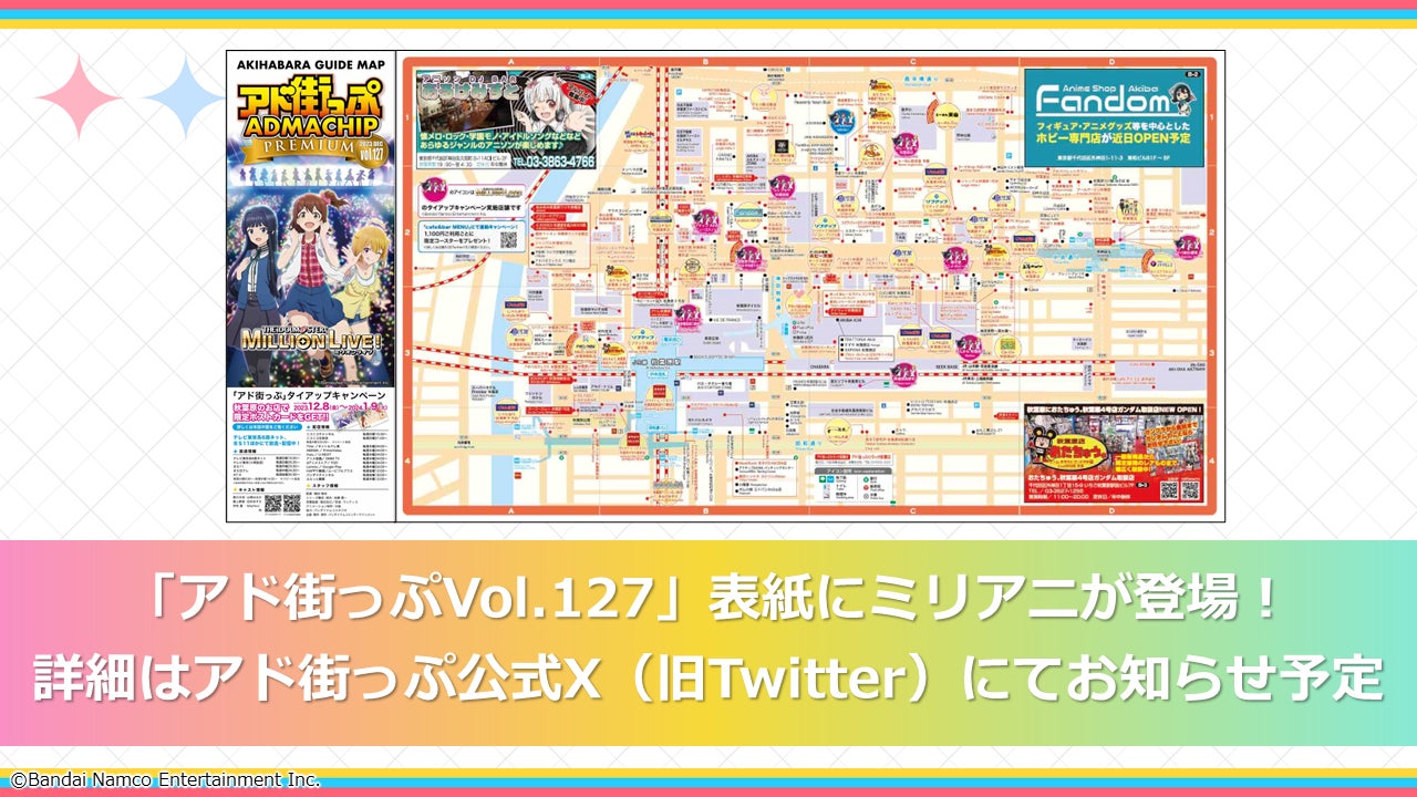アニメ「アイドルマスター ミリオンライブ!」と東京・秋葉原観光マップ「アド街っぷ」とのタイアップキャンペーンの開催が決定しました。