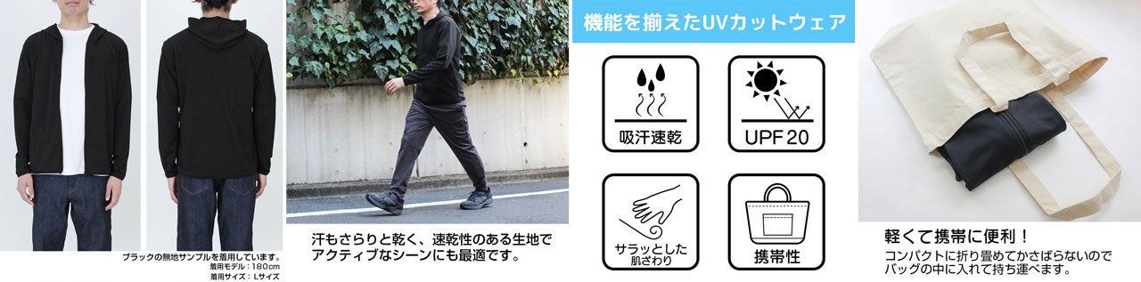 ・速乾性と紫外線防止効果のW効果を備えた実用性の高いパーカーです。