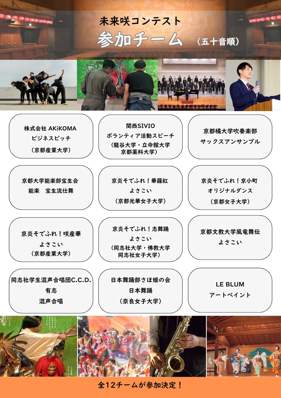 ■京都府では、大学生があらためて自身のキャリアについて考えるきっかけとするため、自身が情熱を注いで活動していることを発表・競い合う「未来咲(みらいさき)コンテスト」を初めて開催します。