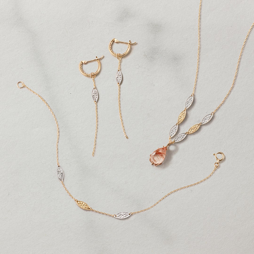 日本に魅せられ、夢中になった印象派の画家たちが描き出したようなやさしい色を表現したアイテム。また、以前人気だった商品のデザインを一新した、少し和を感じさせるような地金パーツがアクセントになるネックレスなどが登場。