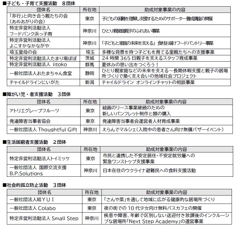 「ささえあい基金」は、生活困窮者や障害者、社会的孤立の防止などへの支援活動に取り組む市民団体やNPO団体などへの助成金制度です。「互いに支え合える地域社会づくりに寄与すること」を目指し2021年度に創設しました。助成金はCO・OP共済《たすけあい》の剰余金の一部が活用され、本年度は、16団体へ1,000万円を助成します。