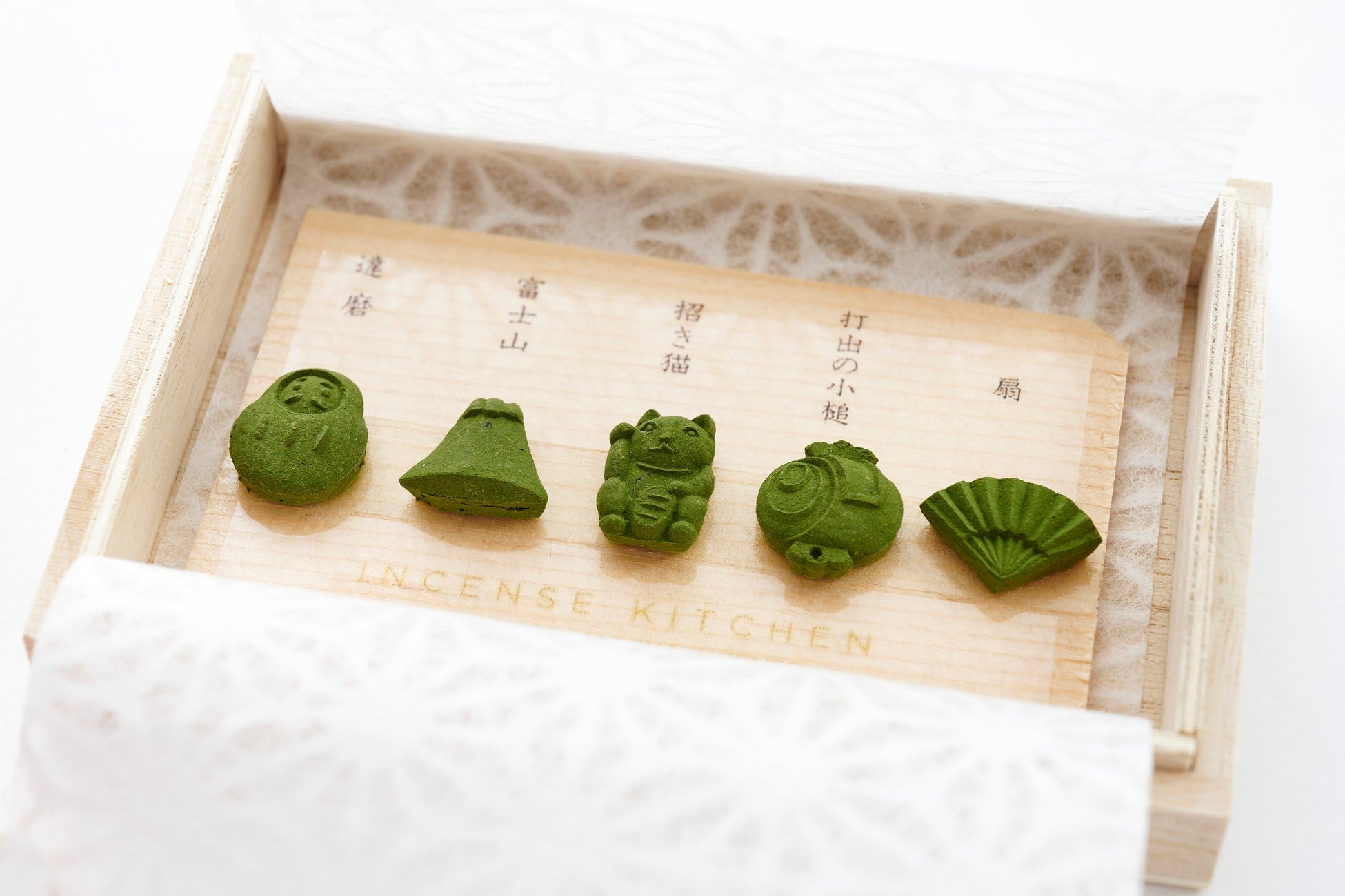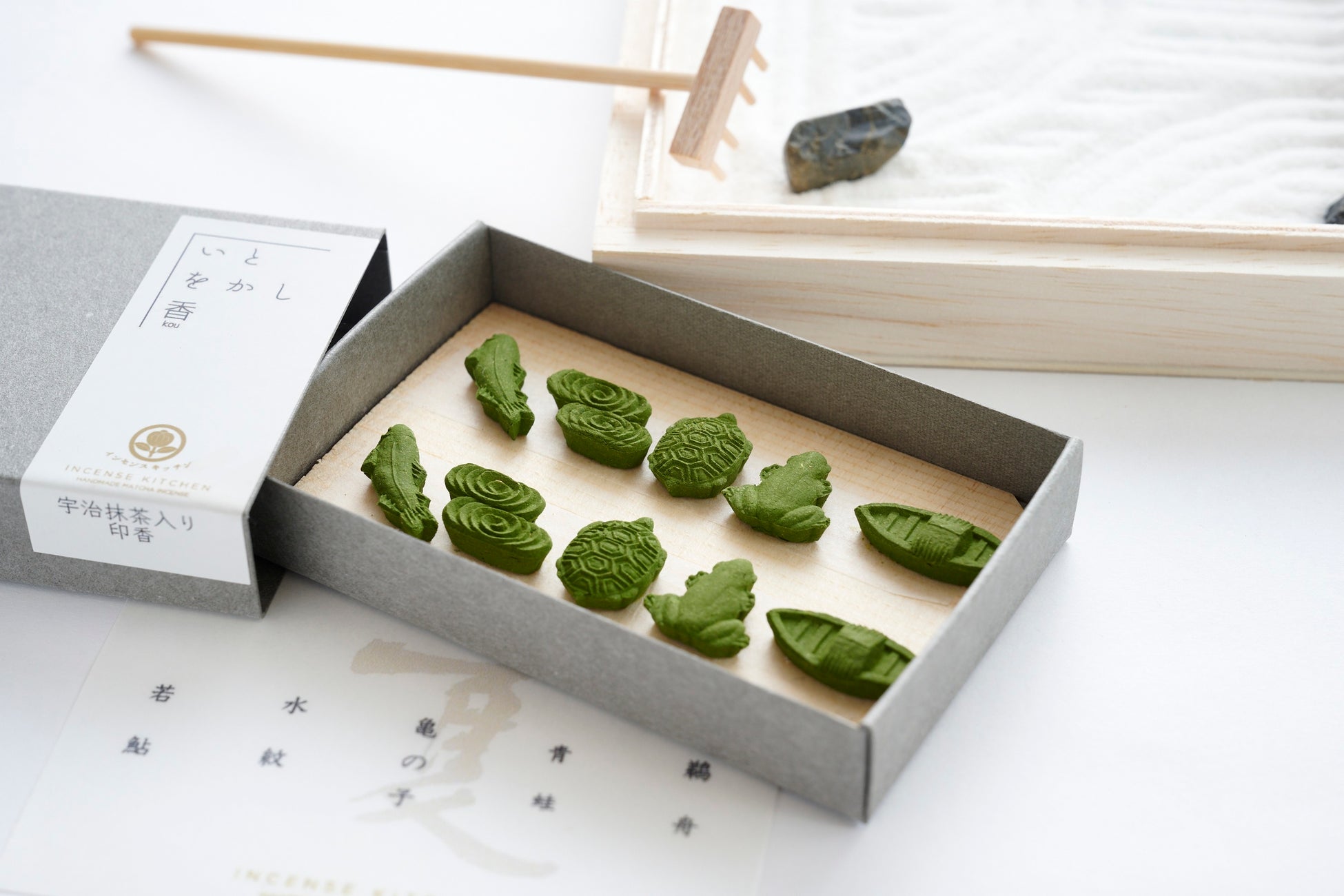 INCENSE KITCHEN(インセンス キッチン)は、宇治を訪れる方に「宇治らしく思い出に残る体験をしていただきたい」との思いから、抹茶をお香粉末に混ぜ粘土状にし、それを宇治にちなんだ物や景色をかたどった木型で型抜きする体験を開催しております。
