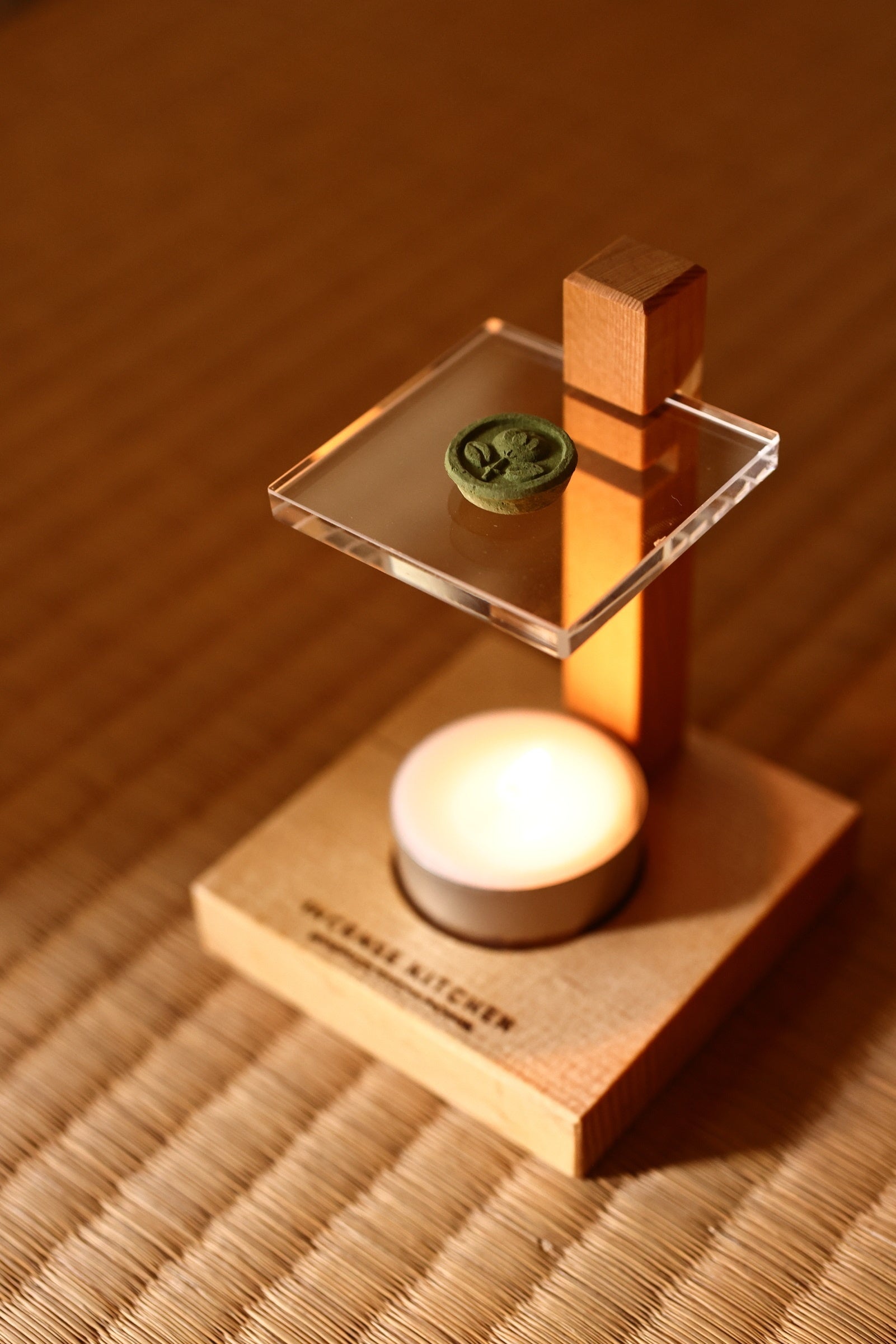 その宇治抹茶の粉末をお香に練り込み、ふくよかな香りと深く鮮やかな緑を伝統的なお茶菓子の木型に閉じ込めた、INCENSE KITCHENの『いとをかし香』。宇治市の工房で一つひとつ丁寧に手作りされており、まるでお菓子のような可愛らしさに心踊ります。香りも見た目も独自性にあふれたこのお香を、奈良 蔦屋書店の暮らしのフェアでご紹介いたします。