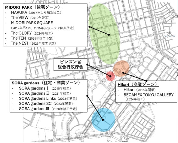 本物件のほか、東急の子会社であるBECAMEX TOKYU CO.,LTD.(以下、ベカメックス東急)は、2012年から12年間、ビンズン新都市(総面積約1,000ha)において、現地の文化・慣習と融合したまちづくり 「東急ガーデンシティ」プロジェクトを推進しています。