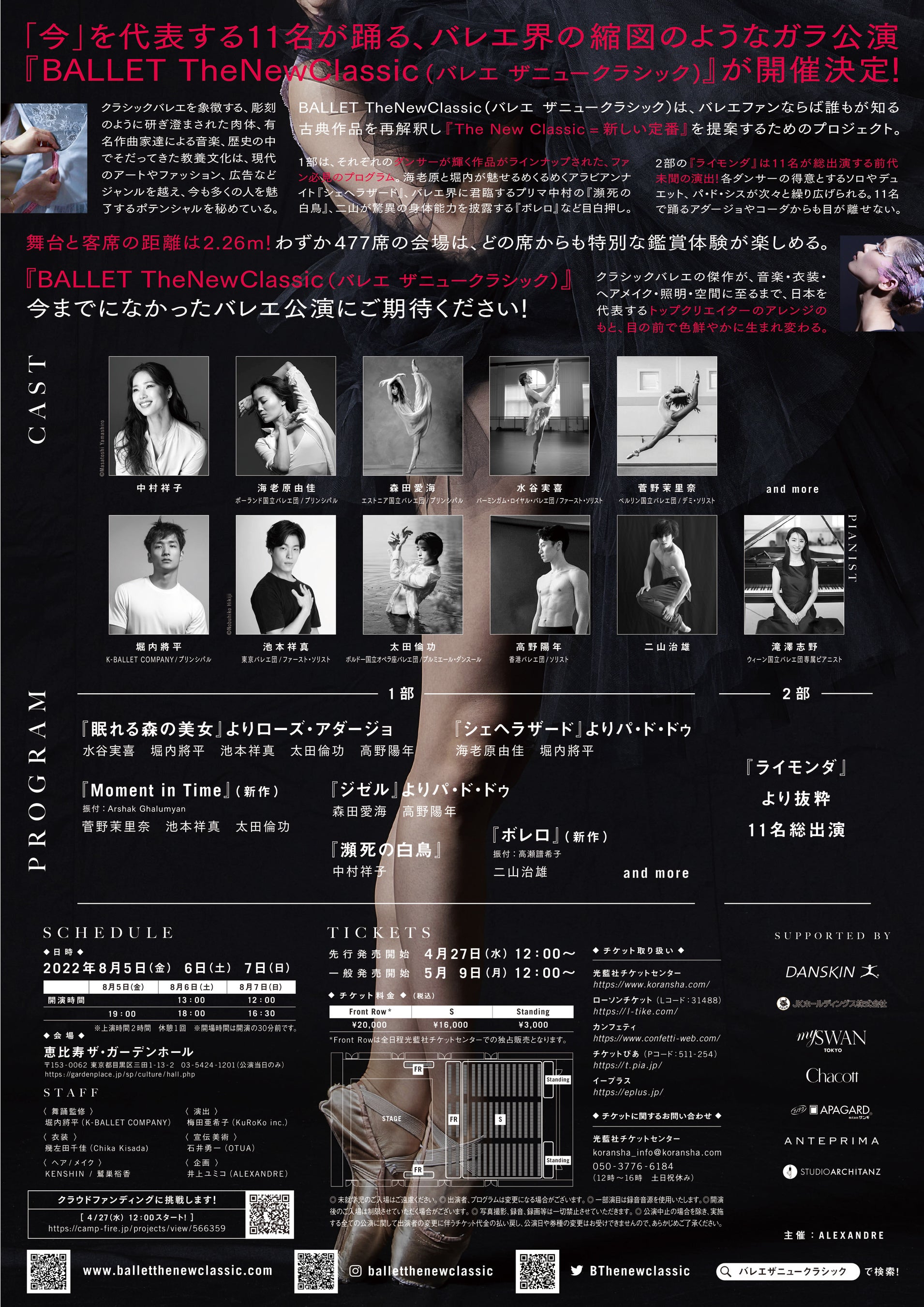 ALEXANDRE主催、『BALLET TheNewClassic 2022』が2022年8月5日(金)~8月7日(日)に恵比寿ザ・ガーデンホール(東京都練馬区)にて上演されます。チケットはカンフェティ(運営:ロングランプランニング株式会社、東京都新宿区、代表取締役:榑松 大剛)にて発売中です。