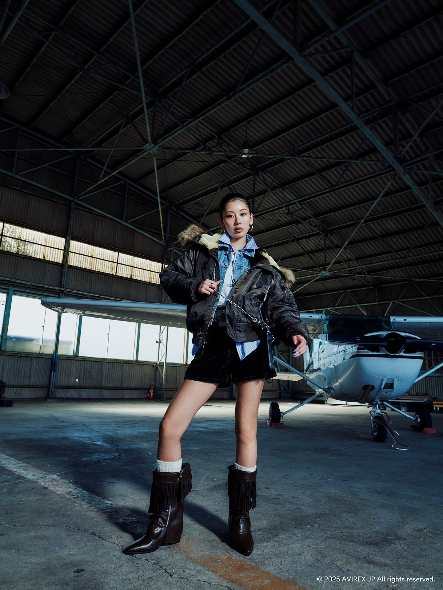 さらに、「AVIREX」のミリタリー由来の本格仕様が光るN-2Bや、「MOUSSY」の得意とするジーニングスタイルのセットアップなど、両ブランドの個性が融合した特別なスタイリングを提案します。