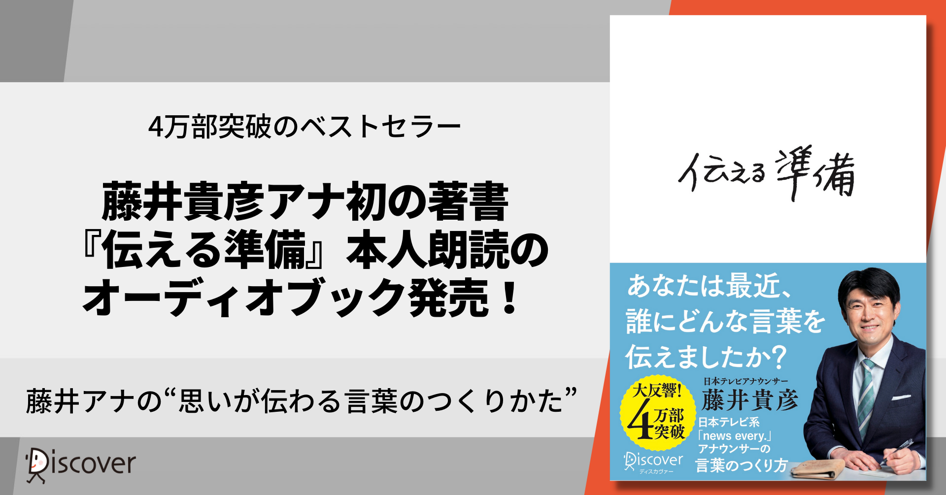 株式会社ディスカヴァー・トゥエンティワン(本社:東京都千代田区、取締役社長:谷口奈緒美)は2023年3月31日に、2021年7月16日刊行の『伝える準備』(藤井貴彦・著)のオーディオブックを発売しました。藤井さんご本人が朗読を担当しています。