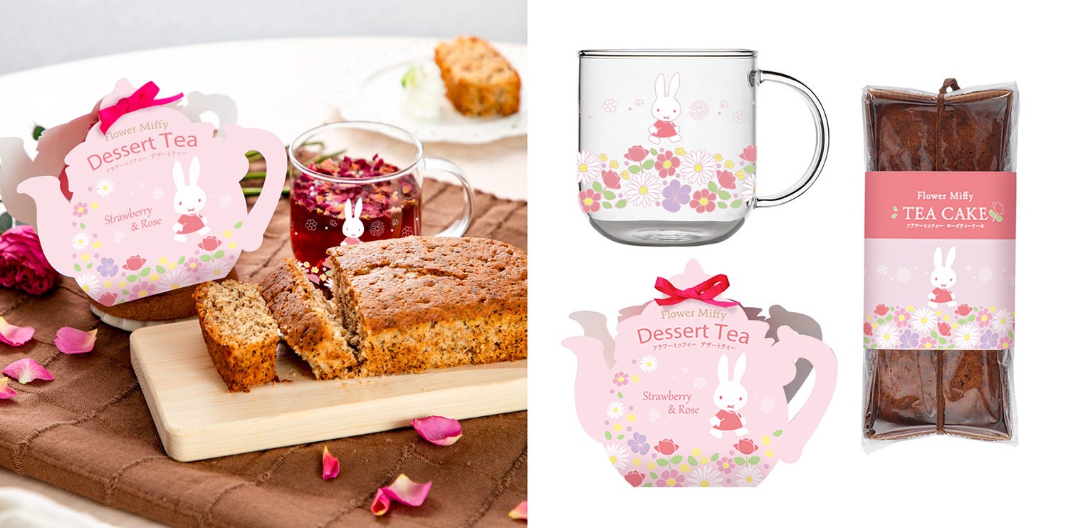 また、お花とは一味違う贈り物をしたい方には「フラワーミッフィー ティータイムセット」がおすすめです。ドライフルーツと食べられるお花”エディブルフラワー”のバラを浮かべて楽しむ贅沢なデザートティーと、紅茶の香りがひろがるパウンドケーキ、フラワーミッフィーオリジナルデザインのティーカップがセットになったスイーツギフトセットで、ほっと安らげるティータイムを楽しめます。