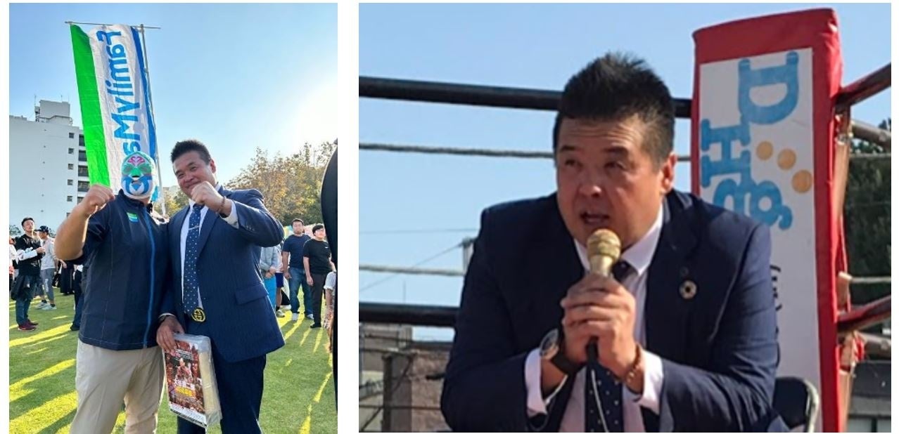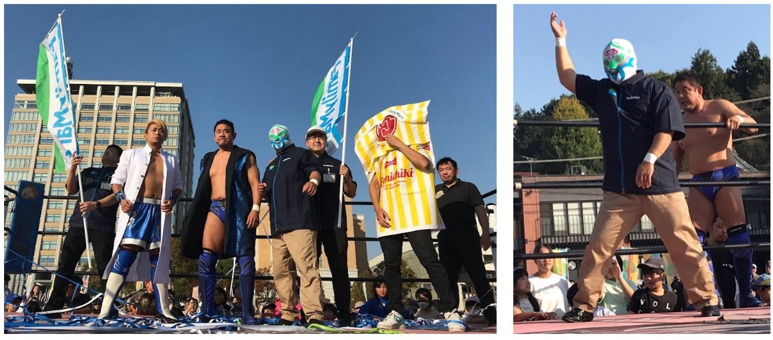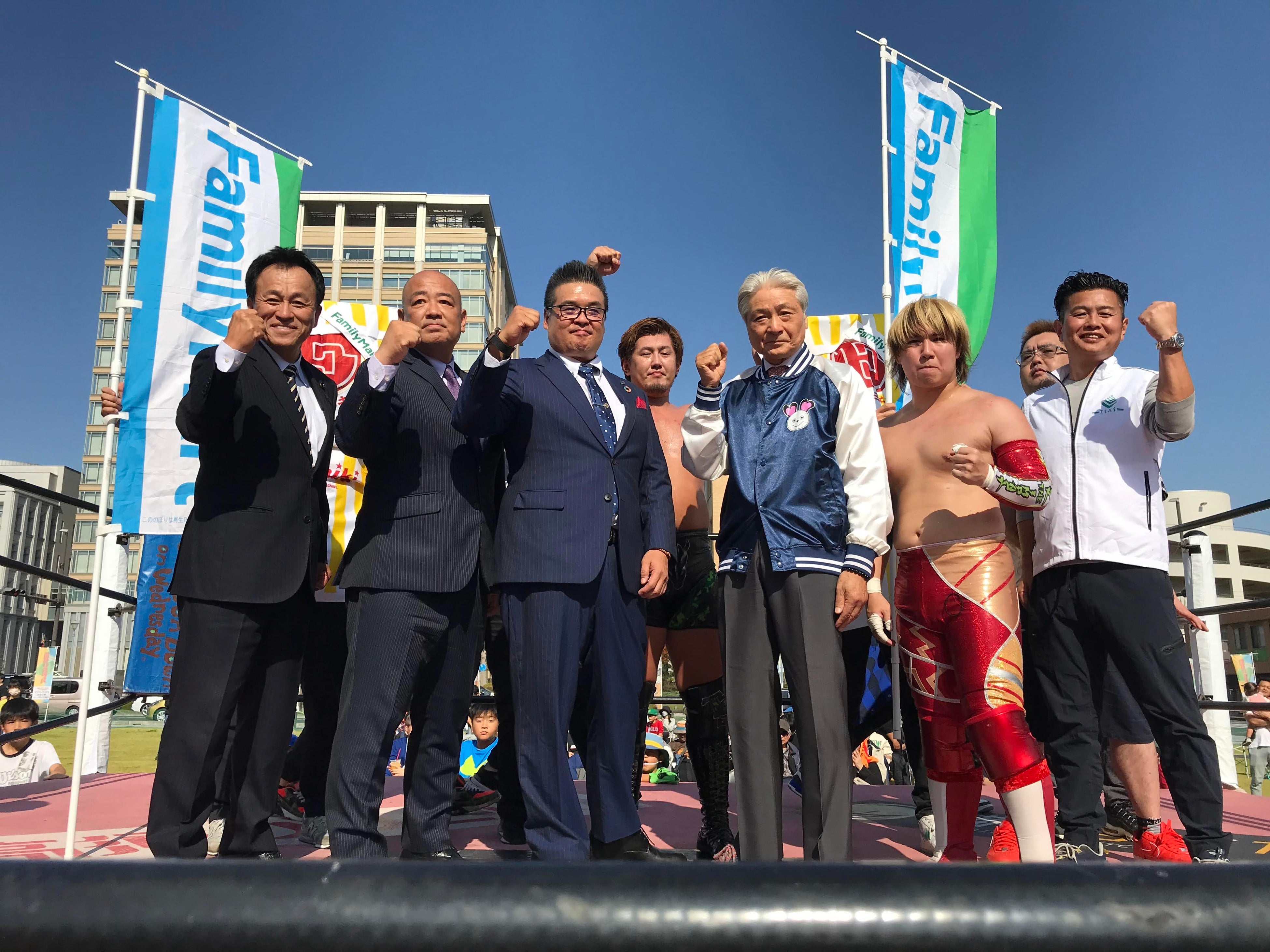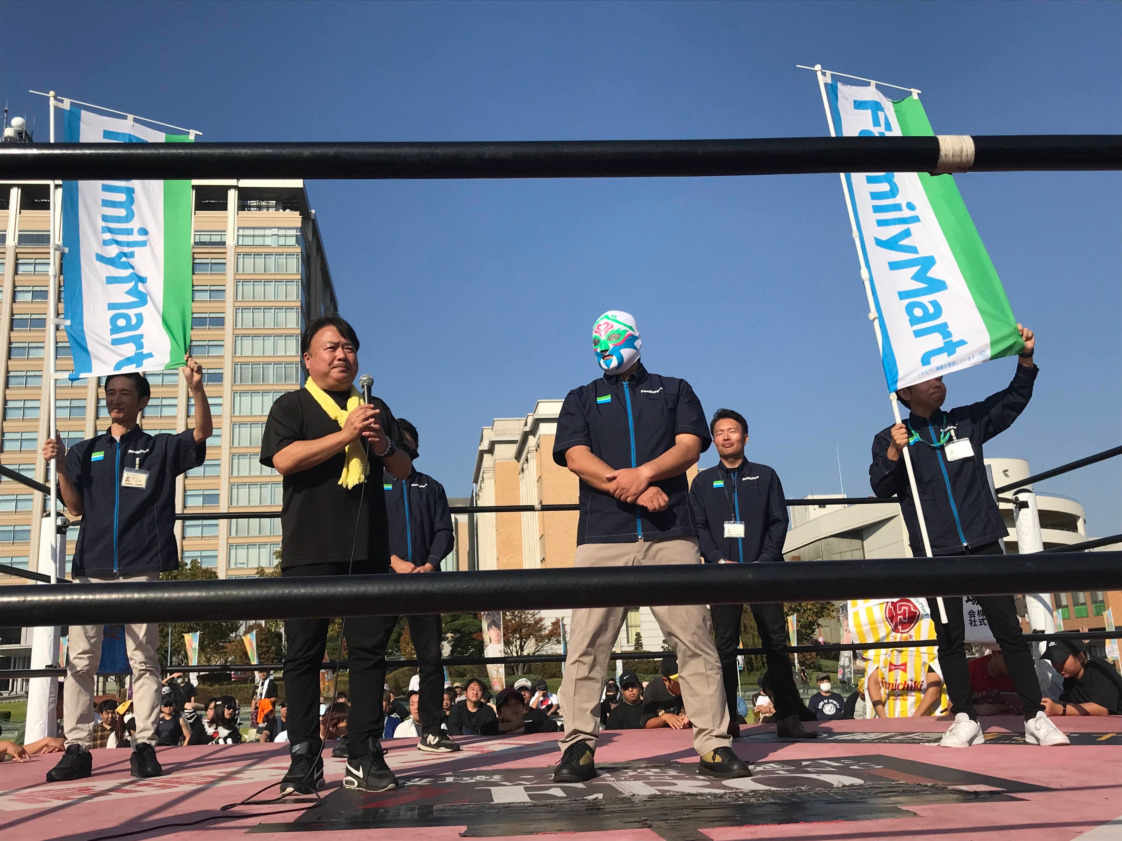 マスク・ド・ファミマ&永田裕志選手&北村彰基選手が夢のタッグを組み試合を実施しました。