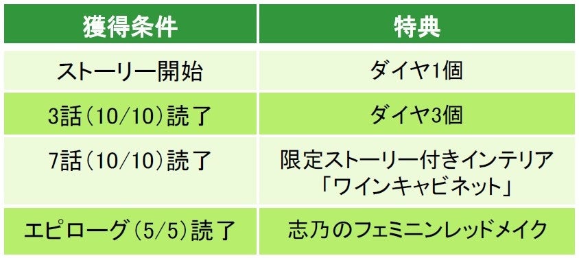 - 志乃・本編カレ目線ストーリー配信記念 早期クリアキャンペーン