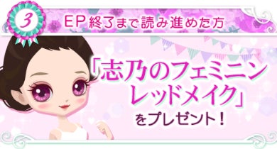 また、ストーリー配信に合わせて、早期クリアキャンペーンを実施中です。志乃の本編カレ目線ストーリーを期限までに指定の話数を読み終えると、可愛いアバターを手に入れることができます。