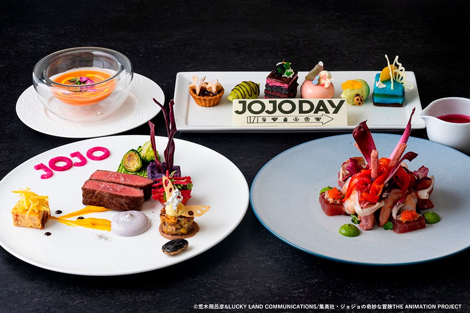 ラウンジ「エスタシオン カフェ」、レストラン「ア ビエント」にて、「ジョジョの奇妙な冒険」各部のキャラクターをイメージしたコラボメニューを展開します。