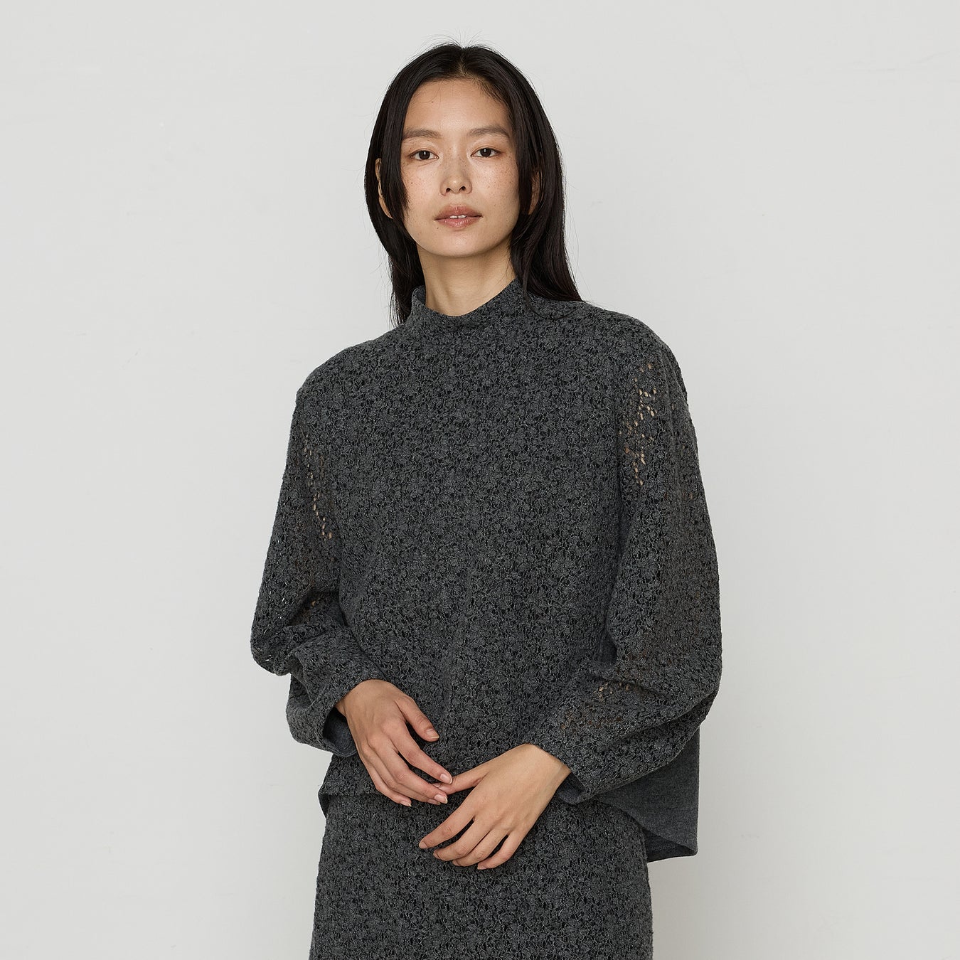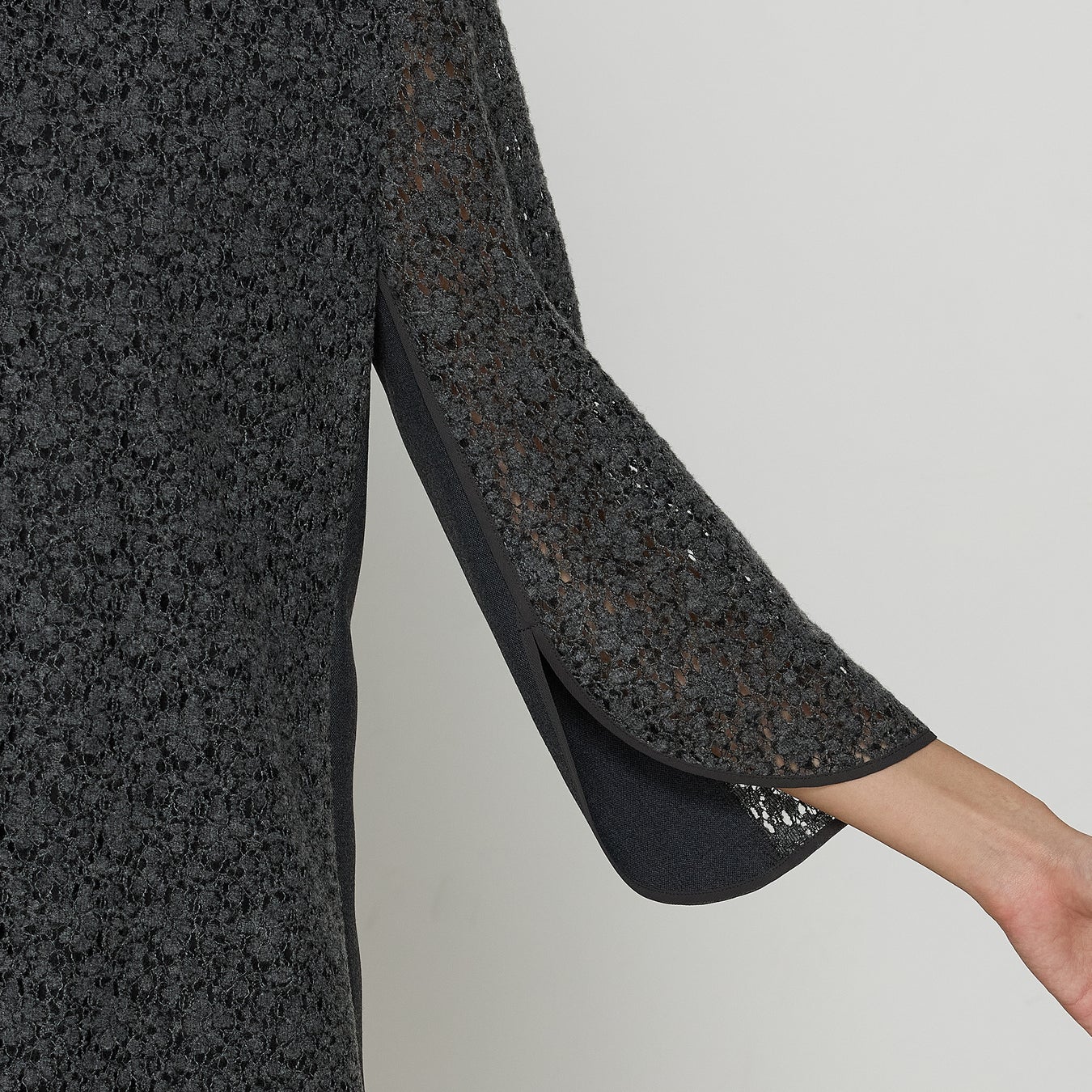 前身頃は起毛レース、後ろ身頃は着心地の良いウールジャージーを使用し、レースの華やかさと着心地の良さを両立しました。