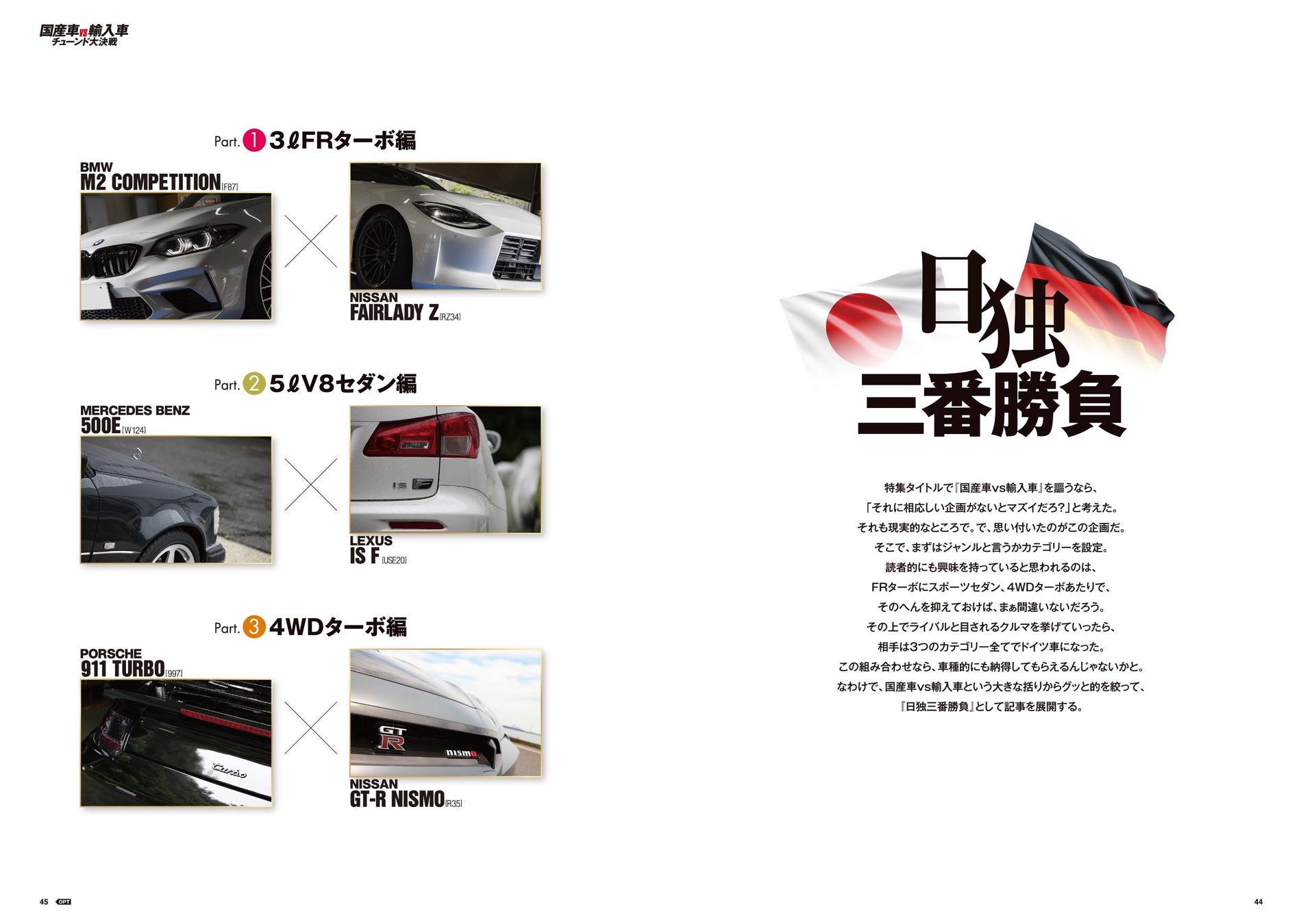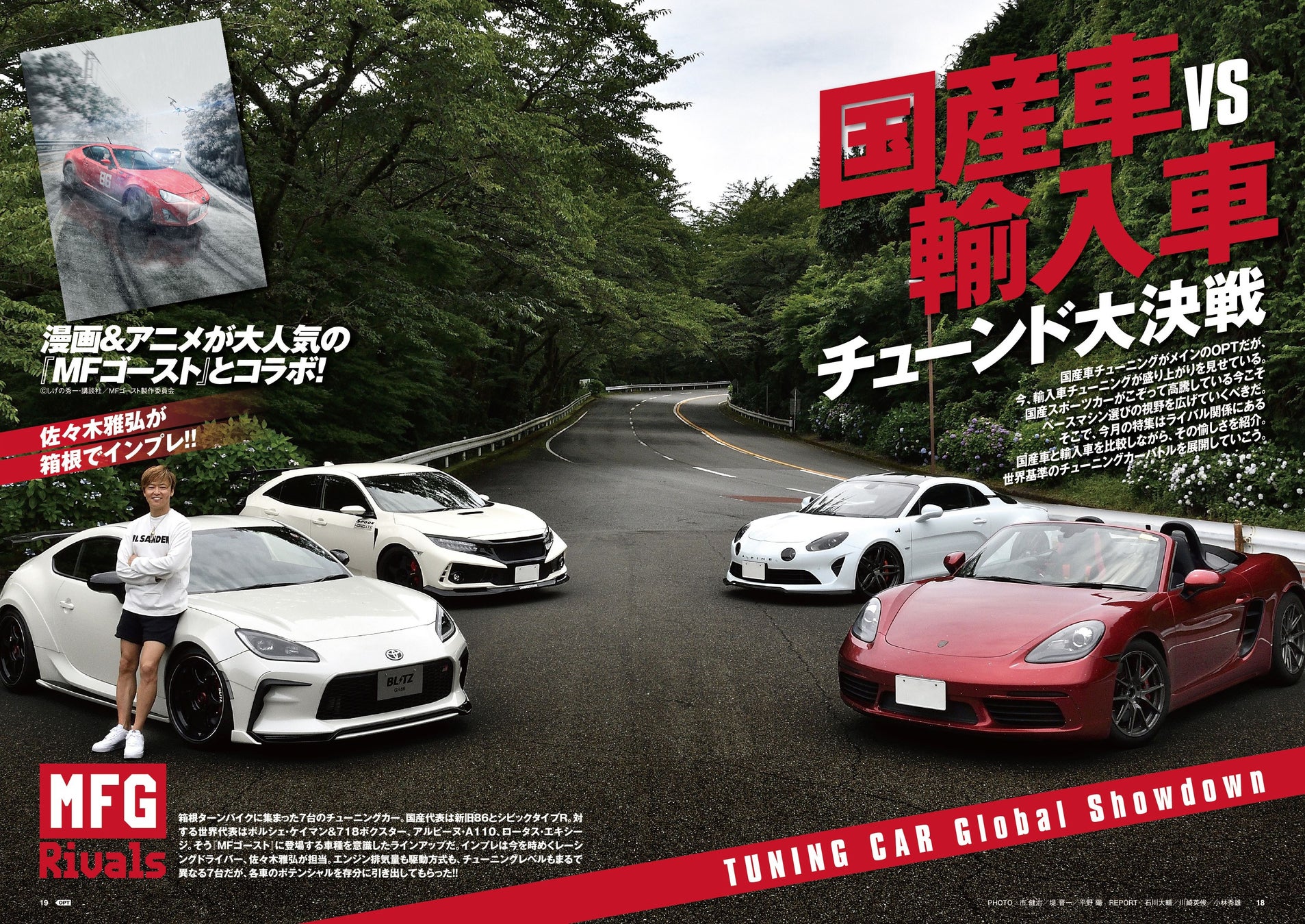 今、輸入車チューニングが盛り上がりを見せている。国産スポーツカーがこぞって高騰している今こそ、ベースマシン選びの視野を広げていくべきだ。そこで、今月の特集はライバル関係にある国産車と輸入車を比較しながら、その愉しさを紹介。世界基準のチューニングカーバトルを展開していく。そして、今月は国産車と輸入車で行なう公道レースを題材にした『MFゴースト』とコラボでお届けする。