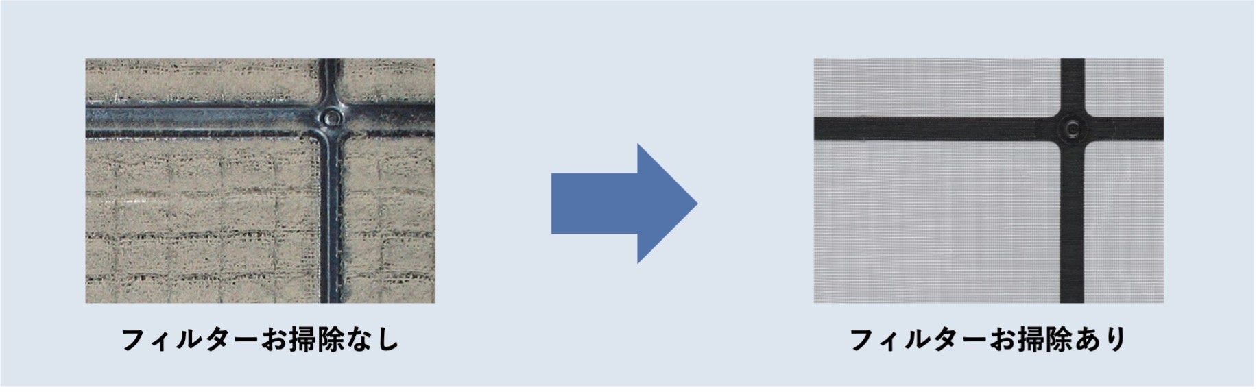 フィルターにホコリが詰まると、エアコンの風量が低下して冷暖房効率が悪くなるだけでなく、電気代の無駄や本体の故障リスクにもつながります。