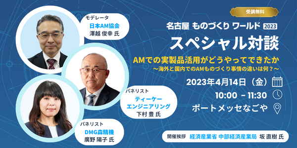 その他、3Dプリンタを実際の量産部品に活用している国内企業に、成功ポイントを聞くことが出来るスペシャル対談も開催。製造業の最新トレンドを学べる、またとない機会です。