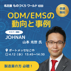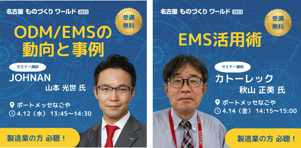 また、今回は名古屋 ものづくり ODM/EMS展を初開催します。製造業界で期待の高まっている本分野の動向と事例についてJOHNANとカトーレックが解説します。